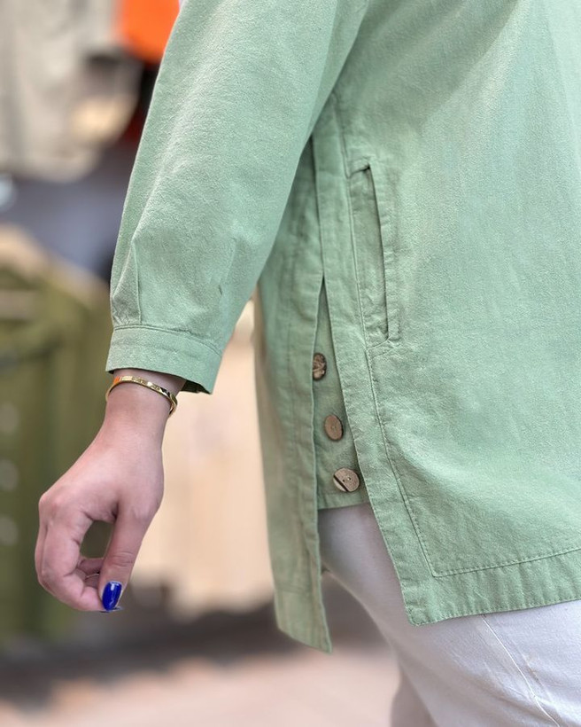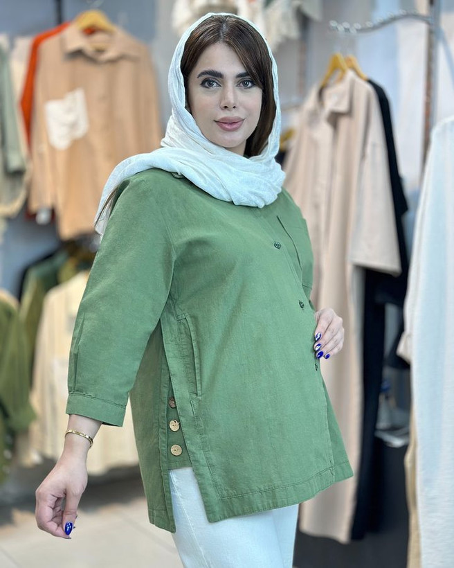 دیدن محصولات مرتبطمانتو شومیز بغل دکمه باقد مناسب ۷۸ و سایز مناسب ۳۶ تا ۴۴ بصورت جلو دکمه دار طراحی شده جنس کار لینن درجه یکوکاملا مناسب فصل می باشد.بغل کار با دکمه چوبی خرجکار شده که جلوه خاصی به مدل داده است.یک جیب بر روی سینه و دوجیب در بغل های کار استفاده شده و هر ۳ جیب کاربردی می باسند.