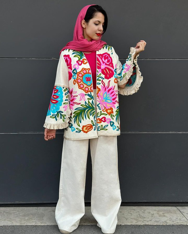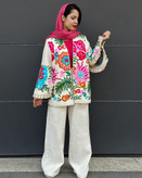 دیدن محصولات مرتبطمانتو خامه دوزی با طرح کاملا بهاره و رنگ بندی جذاب یکی از گزینه های مناسب برای استایل شماست.مانتو بصورت تکرنگ و تک طرح بوده با قد مناسب ۷۰ سانت و نچرال می باشد.لبه استین خرجکار بسیار جذاب کار شده که زیبایی کار را دوچندان کرده است.اینکار بصورت دو سایزی بوده و برای سایز ۳۶ تا ۴۴ کاملا مناسب می باشد.