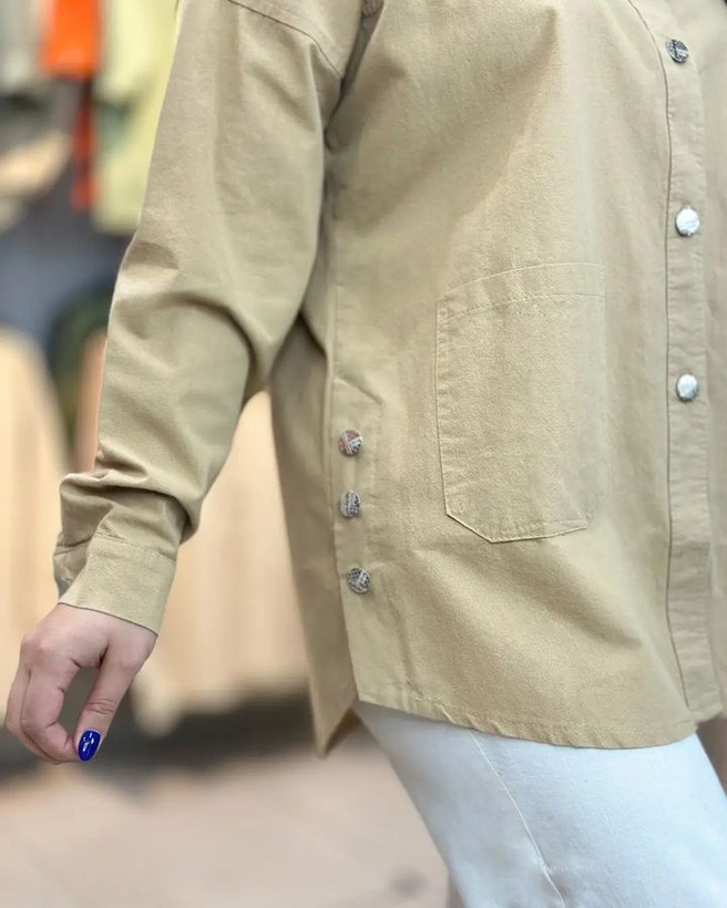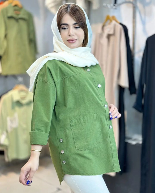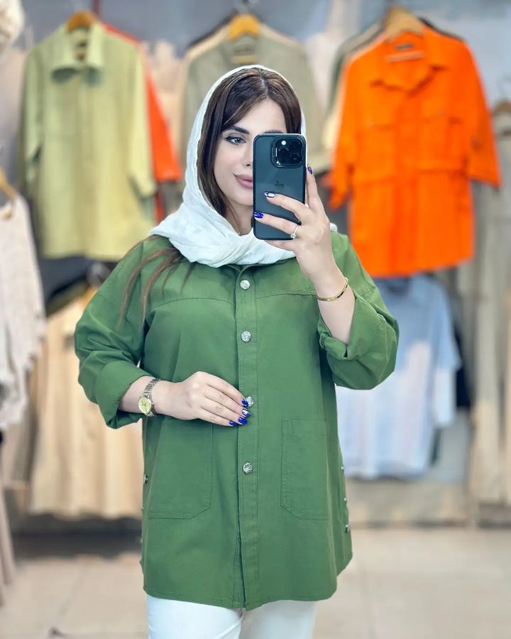 دیدن محصولات مرتبطمانتو شومیزی از جنس لینن درجه یک ومناسب فصل تابستان با قد مناسب ۷۵ سانت فری سایز مناسب سایز ۳۸ تا ۴۴ می باشد.جلوی مانتو با دکمه بسته می شود و برای دانشگاه کاملا مناسب می باشد.بغل مانتو خرجکار دکمه کار شده که به کار زیبایی خاصی داده است.