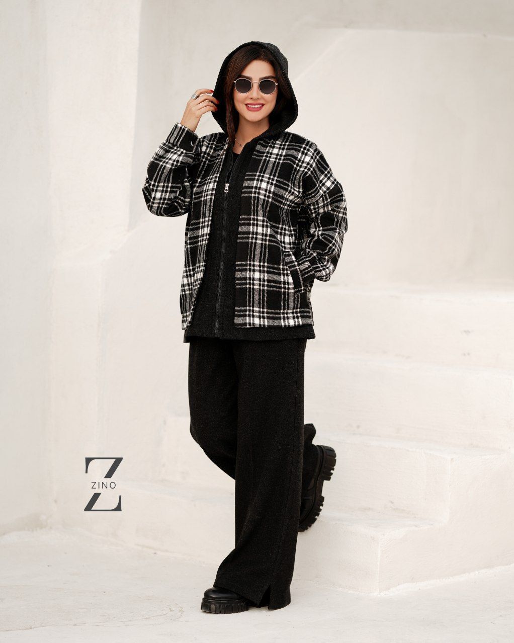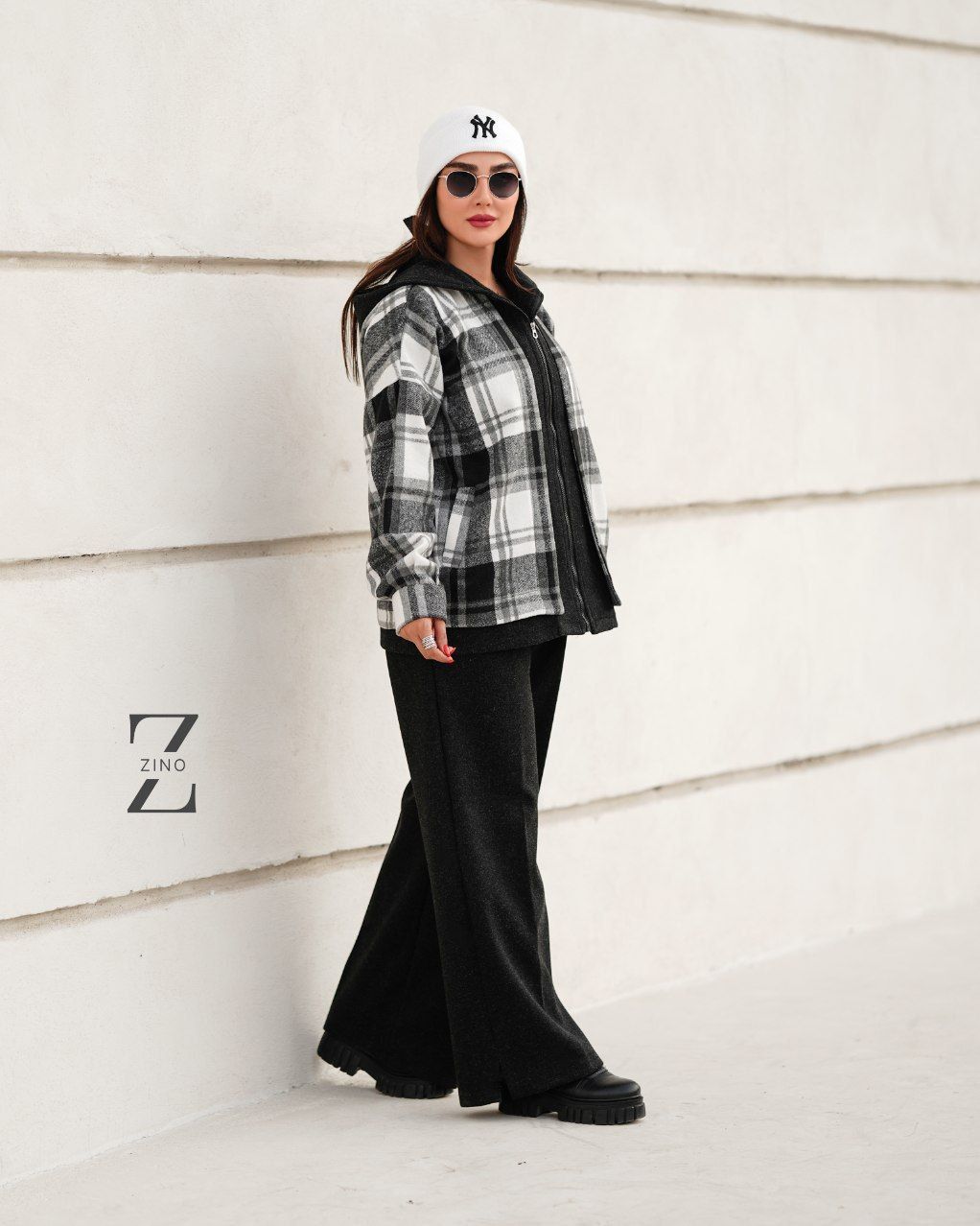 دیدن محصولات مرتبطست شکت شلوارترکیب جنس فوتر کشدار درجه یک و و فوتر چهارخونه تنخور عالی مناسب استایل پاییز و زمستانه شماست.این ست جذاب رو هم میتوانید بصورت جدا و هم باهم استایل کنید.قد شکت 65 و قد شلوار نیز 110 است. روی شکت دوجیب کاربردی طراحی شده است و جلوی آن با زیپ بسته میشود هودی دارای کلاه از جنس خود پارچه می باشد. .پایین شلوار نیز یک چاک کار شده که به مدل جلوه خاصی داده است.