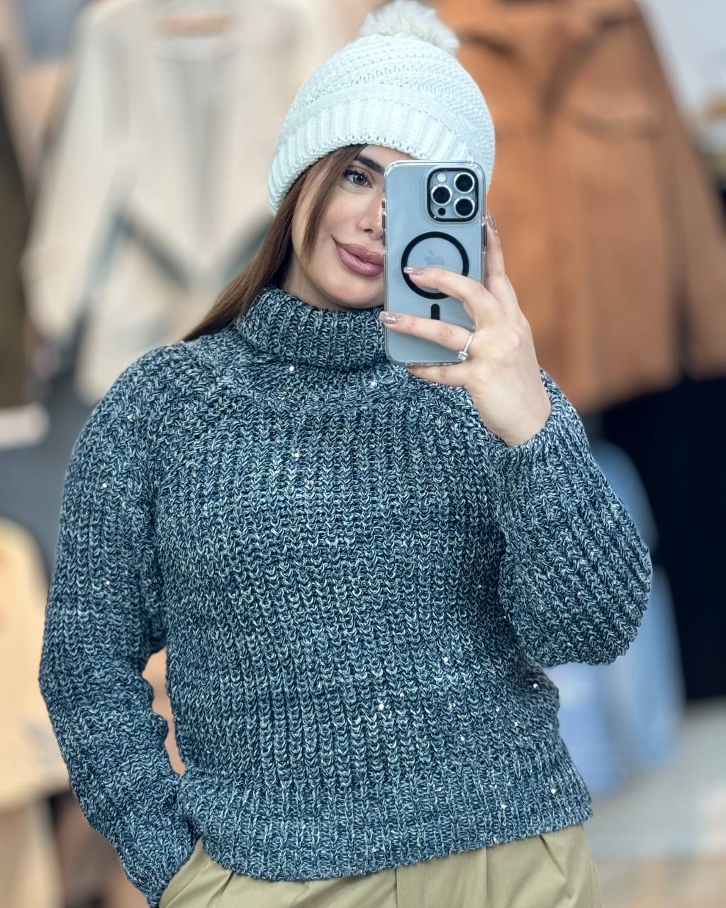 بافت ترک درجه یک گرم بالا قد 60 سانت میباشد.مدل یقه شل کارشده .برای زیر بارانی و کاپشن و پافر بسیار مناسب میباشد و استایل شمارا بسیار خاص می کند