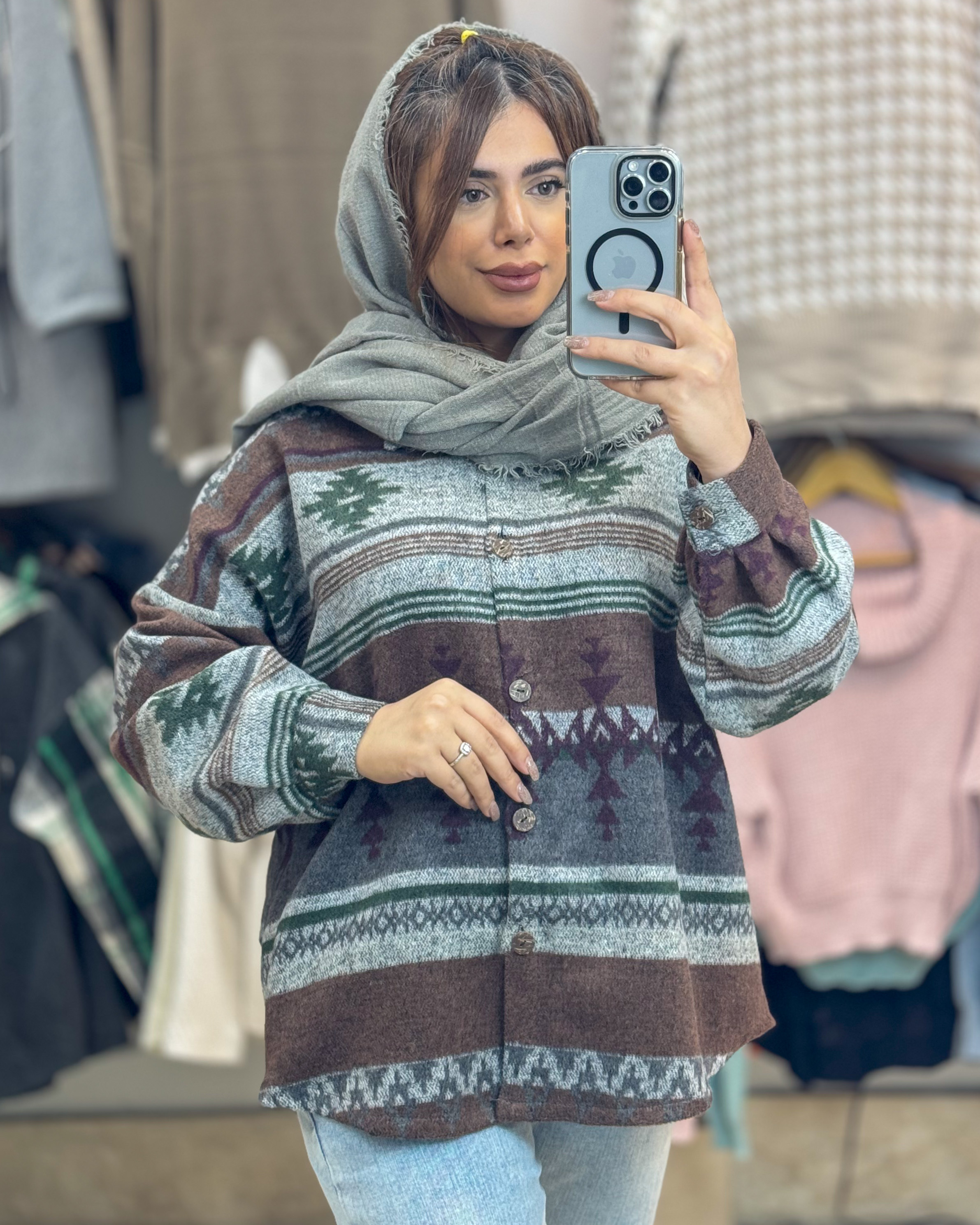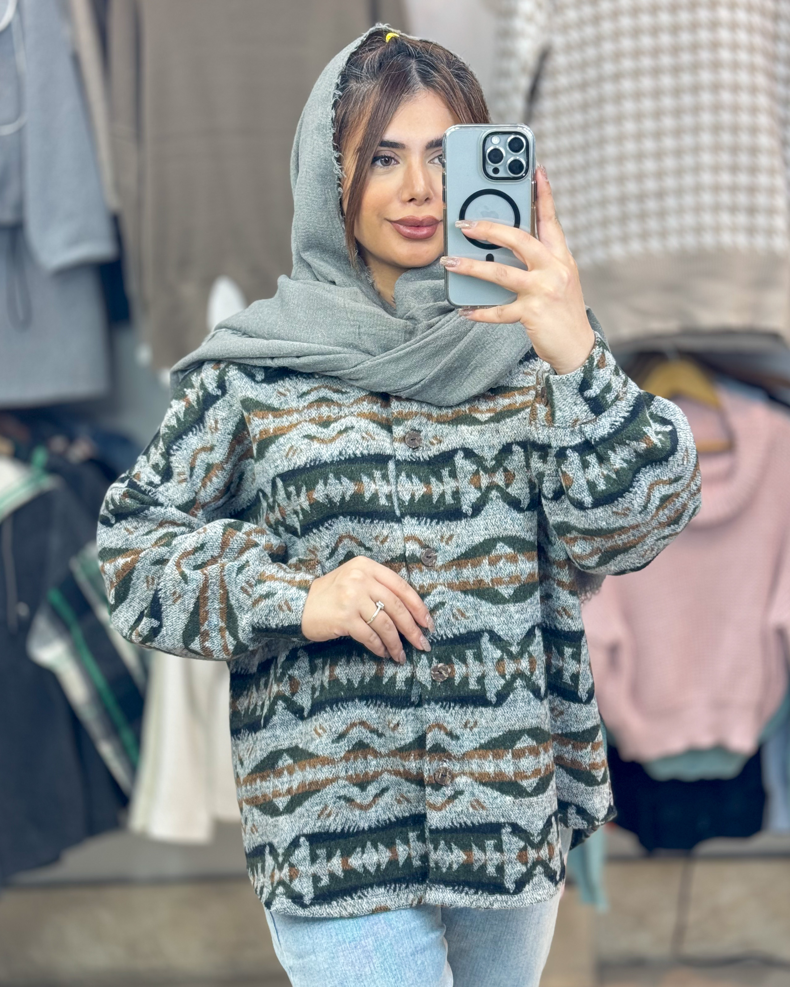 دیدن محصولات مرتبطشکت با طرح بندی سرخ پوستی کاملا اسپرت مناسب استایل روزمره و دورهمی شماست. قد شکت 70 سانت بوده جلوبسته که با دکمه بسته می شود آستین بصورت مچی کار شده است و پایین کار هلال می باشد. یقه بصورت مردانه طراحی شده است.