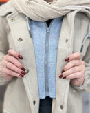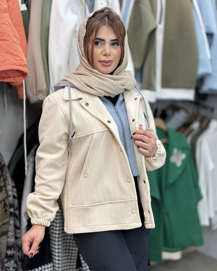 دیدن محصولات مرتبطهودی جلو باز ترکیب پارچه مراکشی و دورس بصورت دو تیمه بوده .ژیله کار از جنس دورس وهودی از جنس مرتکشی کاملا با کیفبت می باسد .قد کار ۶۹ سانت می باشد.جلوی کار با زیپ ودکمه بسته میشود .کار کلاهدار بوده وکاملا مناسب فصل می باسد.دو جیب کاربردی روی هودی کار شده است.