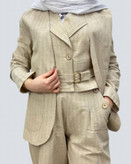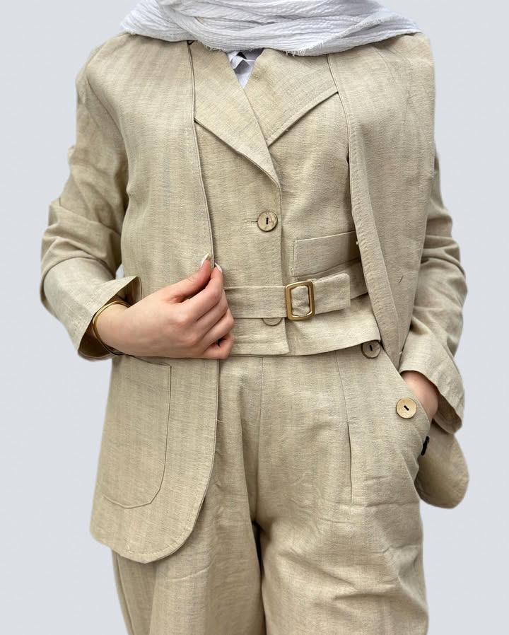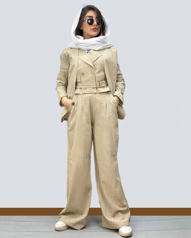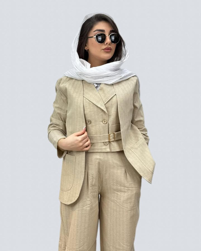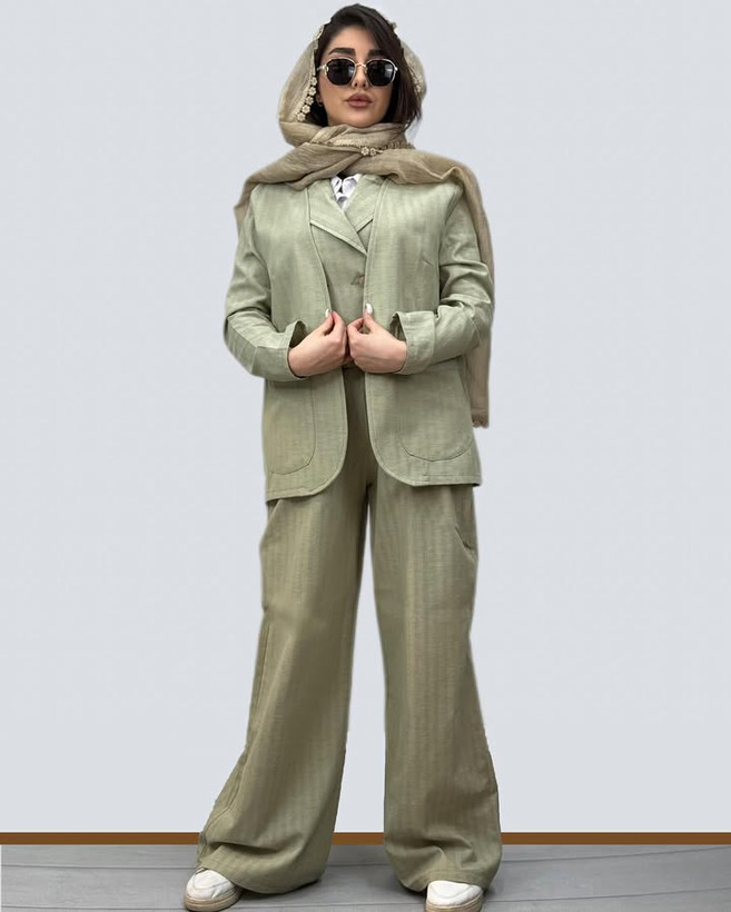 دیدن محصولات مرتبطست ژیله و کت و و شلوار از جنس لینن ژاکارد درجه یک و فوق العاده با کیفیت با تنخور عالی یک استایل جذاب برای افراد خوش استایل می باشد .قد ژیله 60 سانت و قد شلوار 100 و قد کت 75 میباشد. ژیله کار با دکمه بسته می شود ویک کمربند بذای تنظیم سایز روی آن کار شده است . یقه ژیله انگلیسی می باشد.روی کت و شلواردو جیب کاربردی کار شده است . شلوار بصورت واید طراحی شده که ترند امسال می باشد.