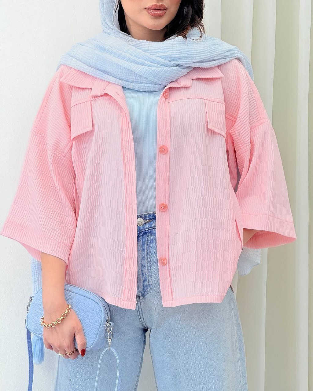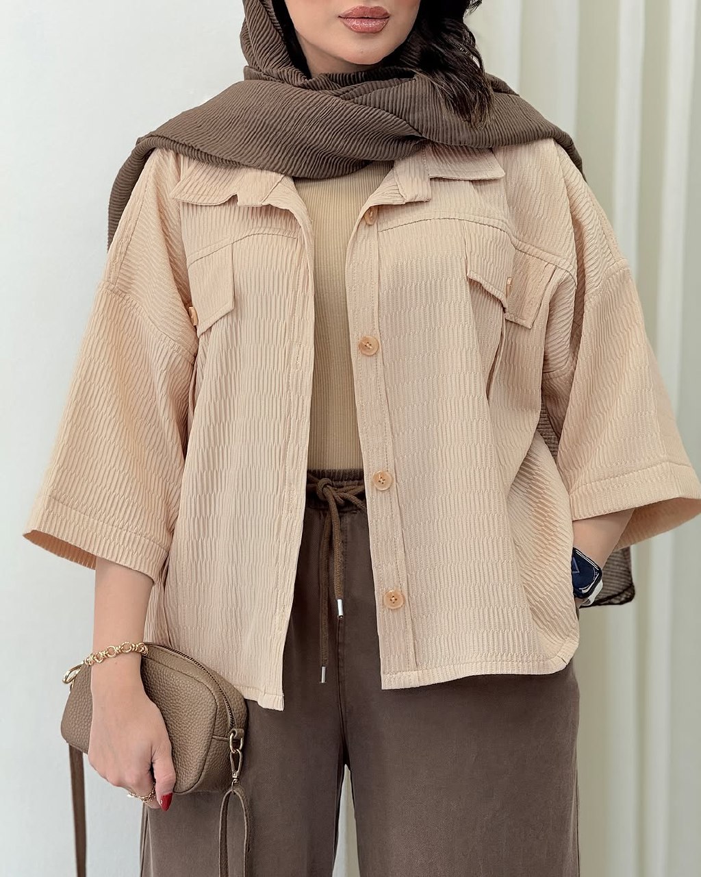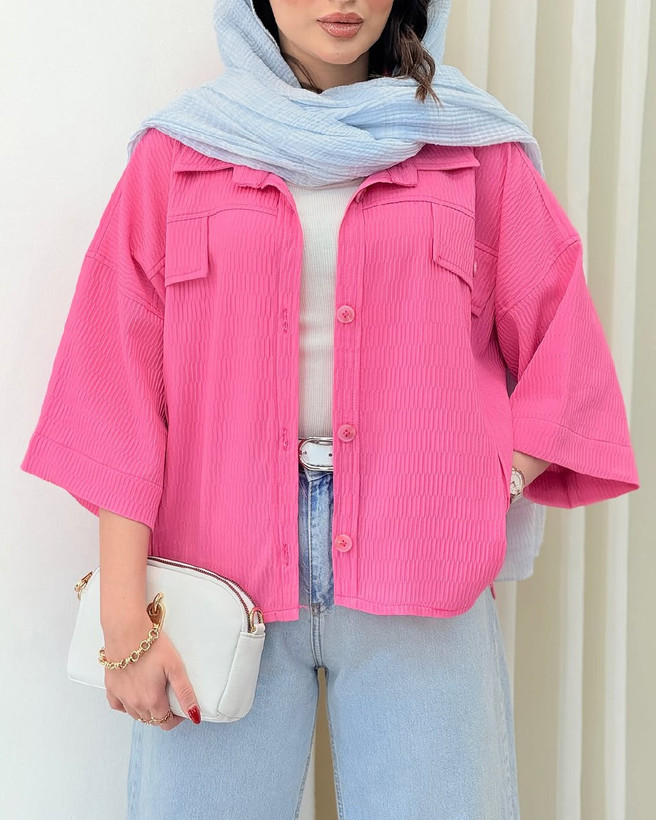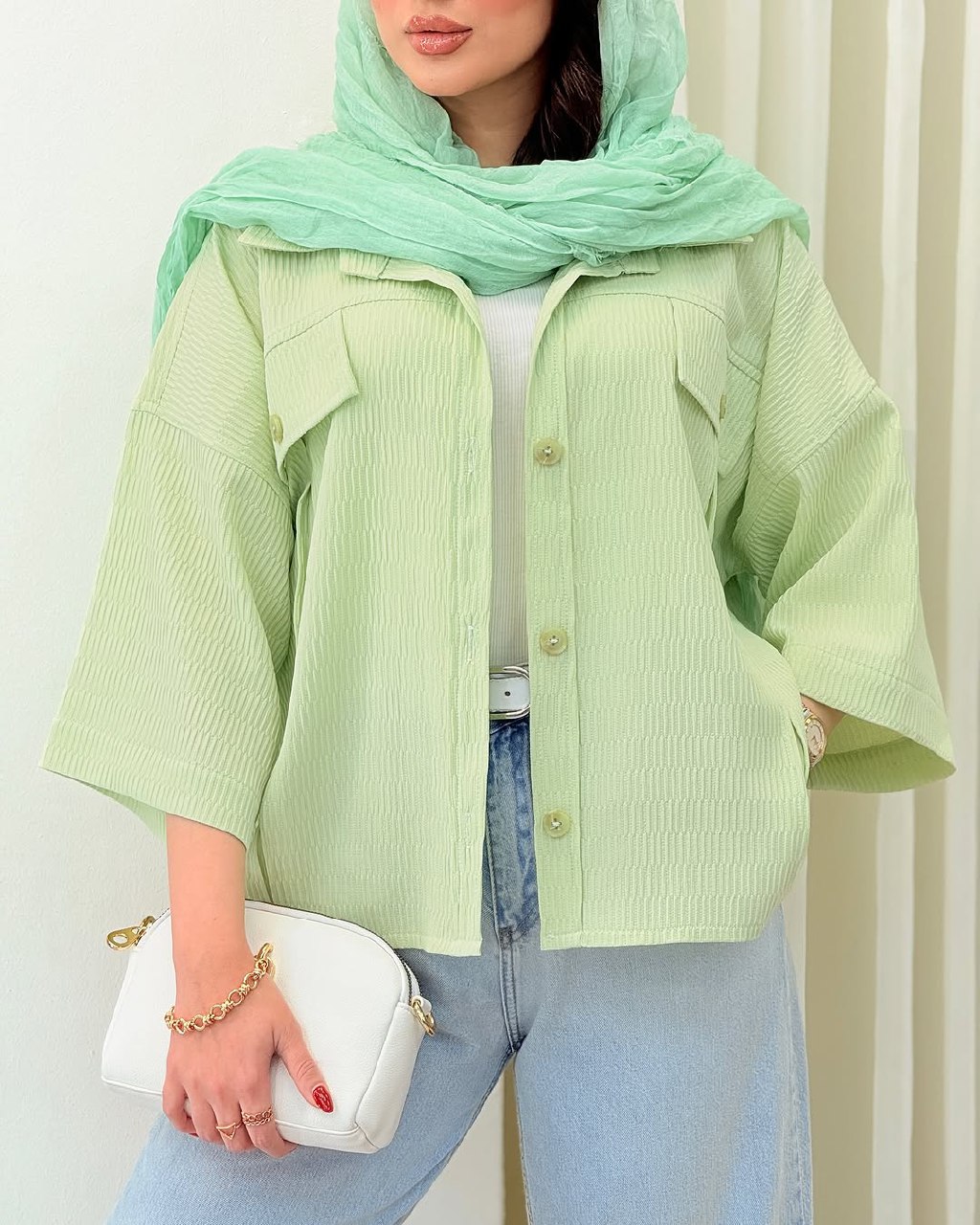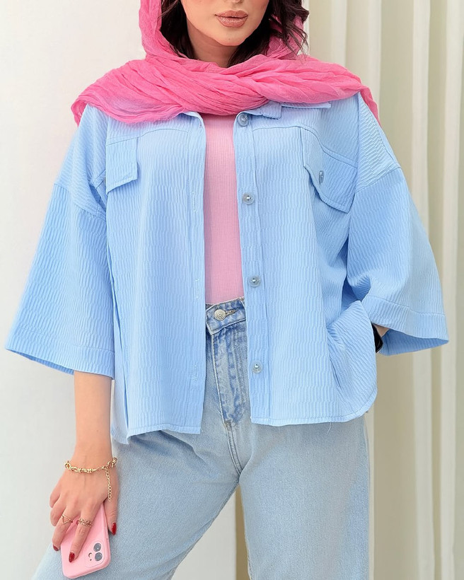 مانتو شومیزی از جنس السا درجه یک بدون آبرفت فوق العاده لطیف و مناسب فصل قد شومیز ۶۰ سانت فری سایز مناسب سایز ۳۸ تا ۴۲ می باشد. مانتو بادکمه بسته میشود. یقه کار بصورت مردانه طراحی شده است. .دوجیب کاربردی روی مانتو طراحی شده است. دو پیلی جذاب روی شومیز طراحی شده که زیبایی خاصی به مدل داده است.