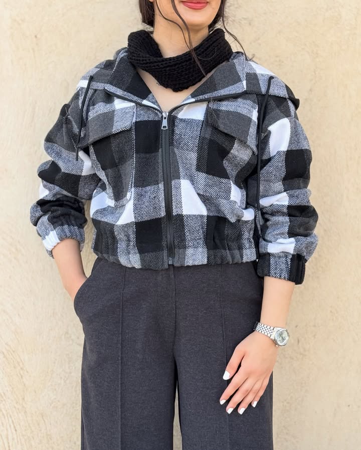 بامبر چهارخونه ترند این فصل با تنخور فوق العاده و کیفیت دوخت عالی با دو جیب کاربردی بر روی کار جلوی کار با زیپ بسته میشود لب آستین و پایین کار با کش خرجکار شده است.