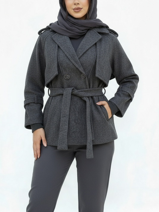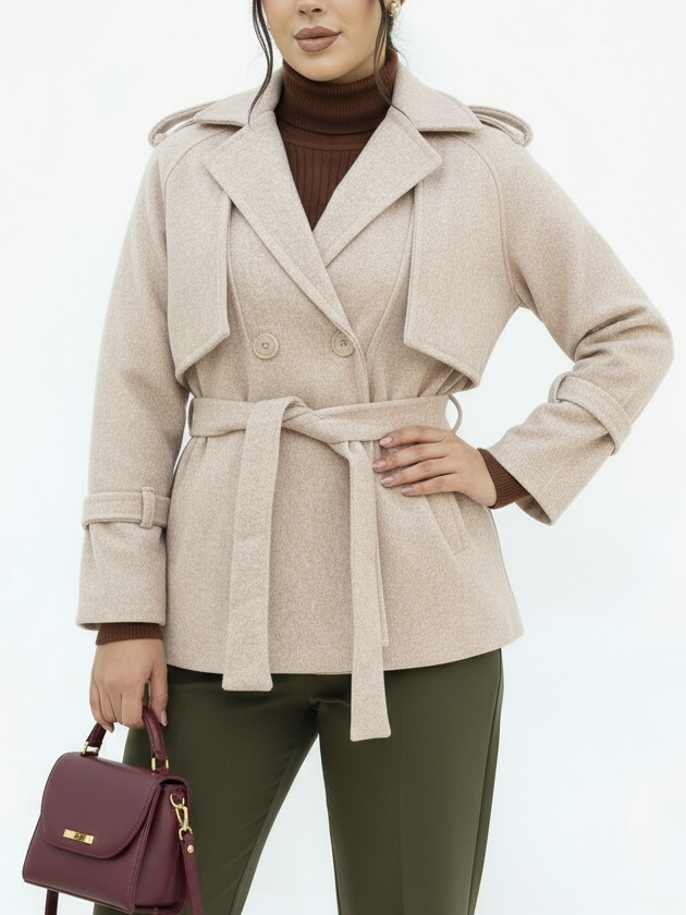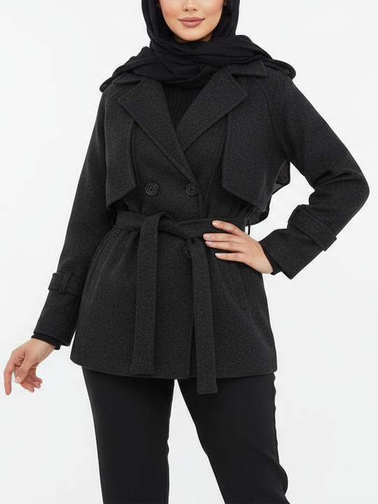 پالتو 4 دکمه شنل دار مدل پریا